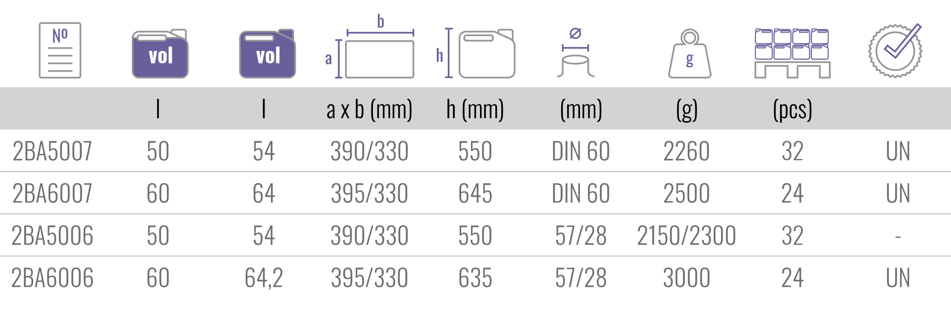 Bure je projektovano tako da dobro podnosi opterećenja i omogućava slaganje jednog bureta na drugo. Zatvara se plastičnim poklopcem sa unutrašnjim ili spoljašnjim navojem, koji je prema potrebi opremljen sa oduškom. Napravljen je od HDPE materijala; pojedini modeli imaju UN A-test za transport i skladištenje opasnih materija. Manje bure ima fleksibilnu plastičnu ručku radi lakšeg prenošenja. Druge karakteristike su iste kao kod prethodnog bureta.