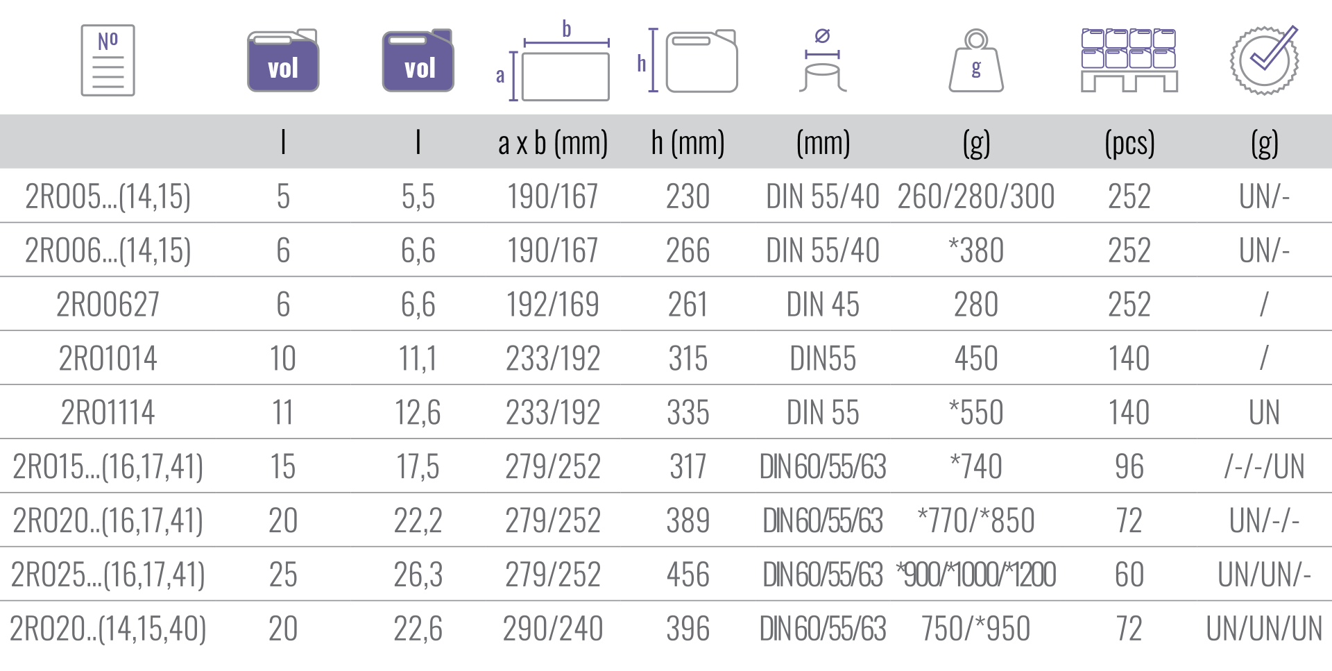 Kanisteri su projektovani tako da se idealno slažu na EU palete, jedan na drugi. Zatvaraju se navojnim zatvaračem koji ima umetnutu sigurnosnu plombu. Napravljeni su od HDPE materijala i imaju UN A-test za transport i skladištenje opasnih materija. Najviše se koriste u hemijskoj i prehrambenoj industriji.